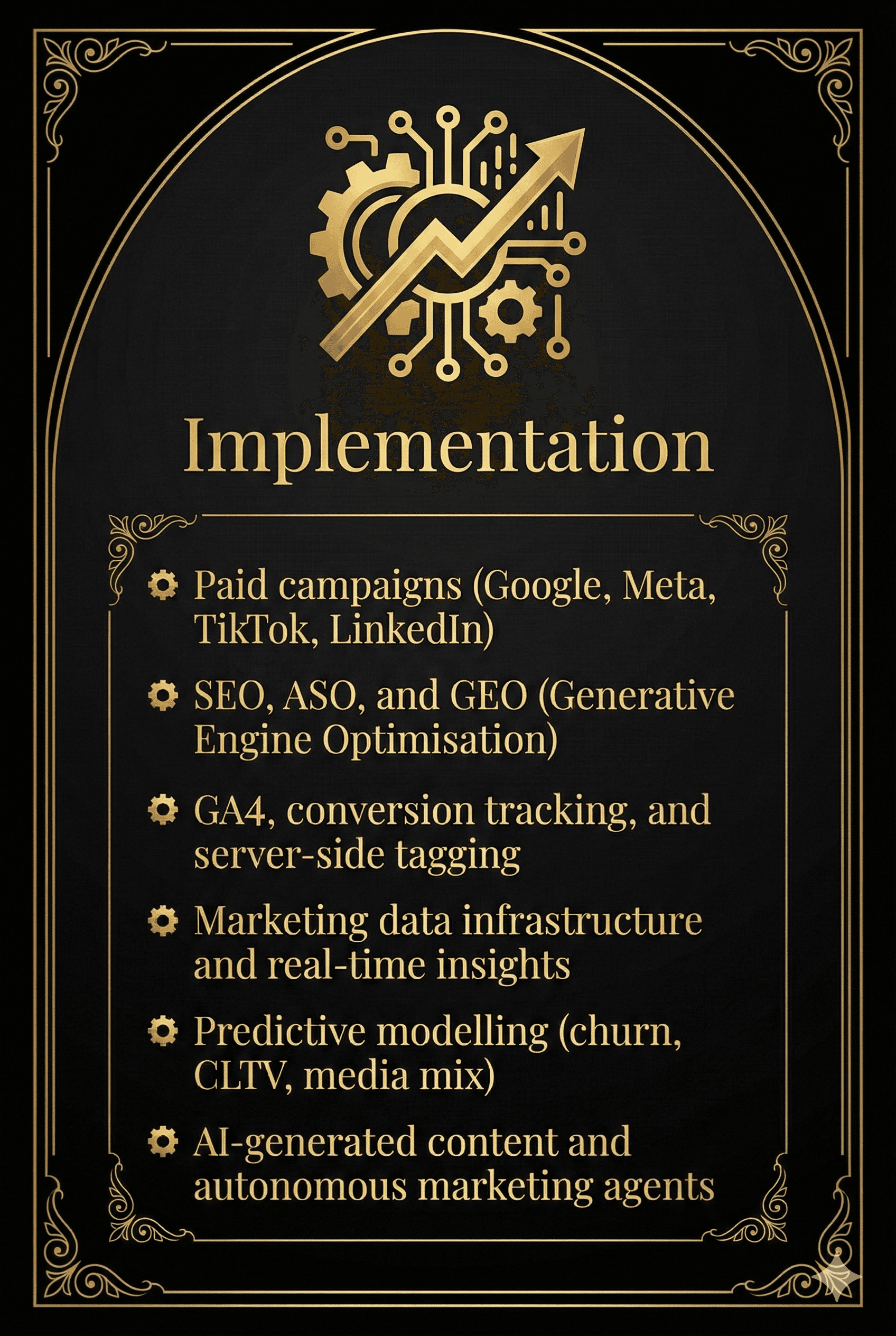 we turn marketing into a disciplined performance machine—measurable, scalable, and powered by real intelligence (not guesswork or “gut feeling”)